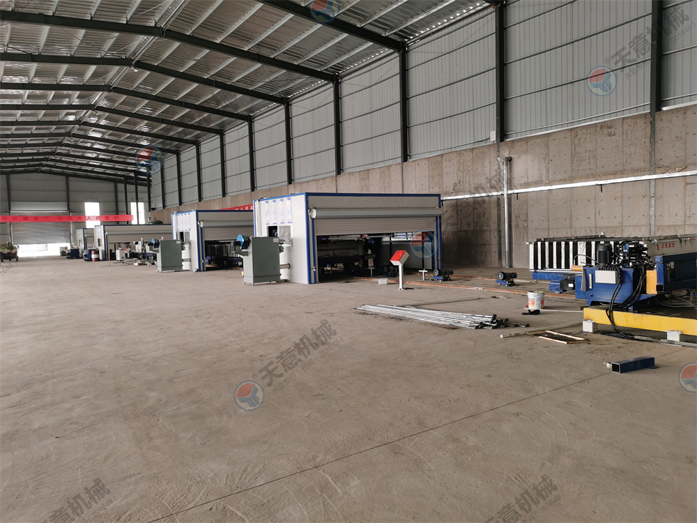 10.墻板機(jī)雙向開(kāi)合,采用卯榫工藝焊接,確保大板焊接厚度以至,大板經(jīng)四面刨銑,能保證生產(chǎn)線上的模車(chē)一至,以便于后期整體上成型,自動(dòng)抽芯機(jī),自動(dòng)涂油機(jī)的安裝。