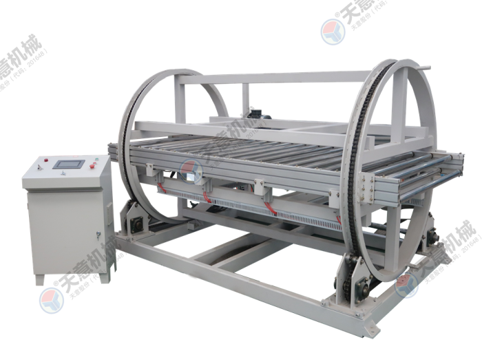 適用于平面門板、櫥柜側(cè)板、硅酸蓋板、玻鎂板、水泥纖維板等板式工件,配套連線作業(yè)時進(jìn)行180°自動翻面1.翻轉(zhuǎn)電機1.5KW(帶抱閘),輸送電機0.75KW。2.翻轉(zhuǎn)傳動鏈條采用16A鏈條,承載能力高,動載荷大。3.采用獨立電箱控制,操作控制簡單方便4.設(shè)備兩側(cè)具有鋼絲網(wǎng)保護(hù),提高設(shè)備安全性能