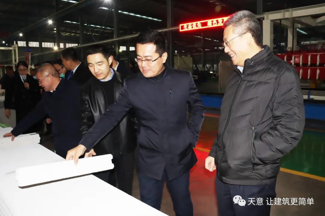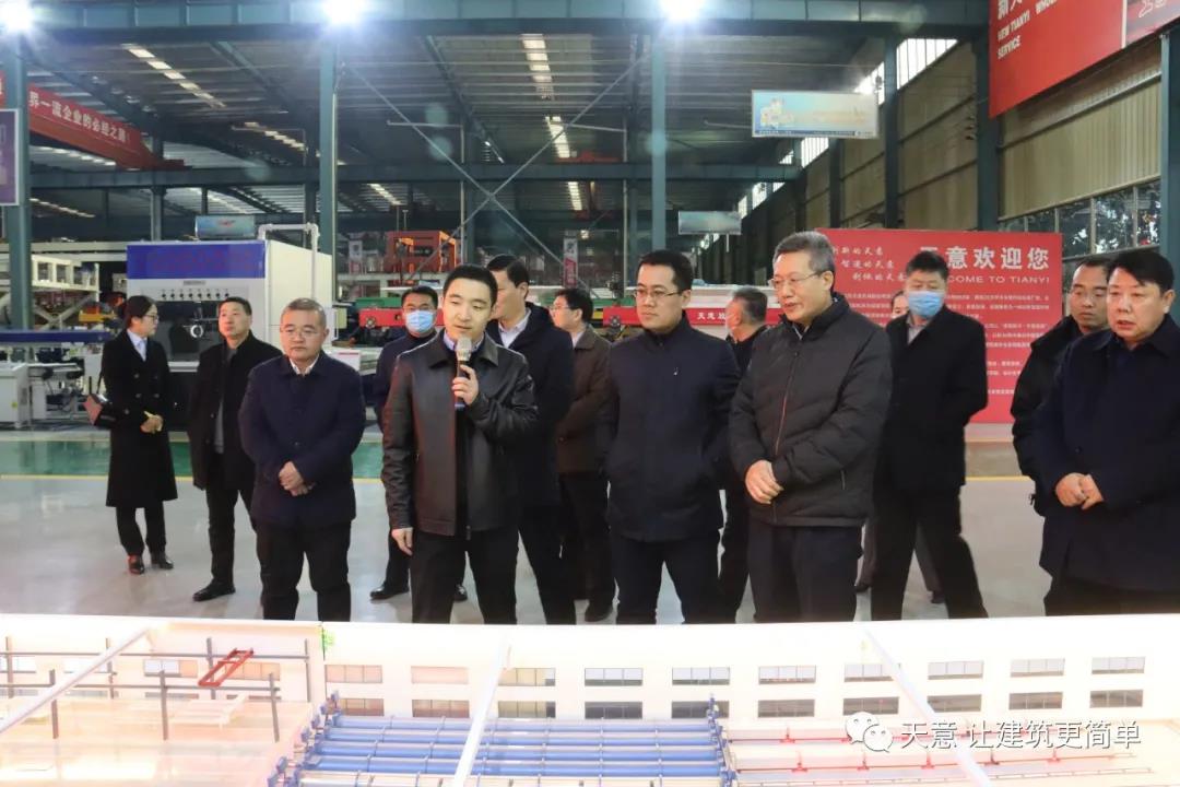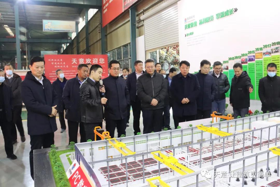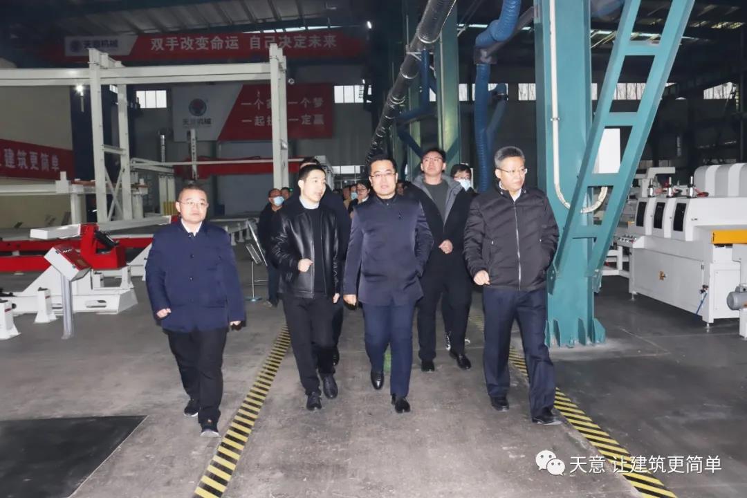 12月19日下午,嘉祥縣委副書記江峰一行蒞臨天意機(jī)械考察全市新舊動能轉(zhuǎn)換現(xiàn)場觀摩項目——裝配式建筑自動化PC生產(chǎn)線項目。兗州區(qū)區(qū)委副書記寇寧,發(fā)展和改革局副局長劉守全,天意機(jī)械總經(jīng)理劉海龍等領(lǐng)導(dǎo)陪同考察。