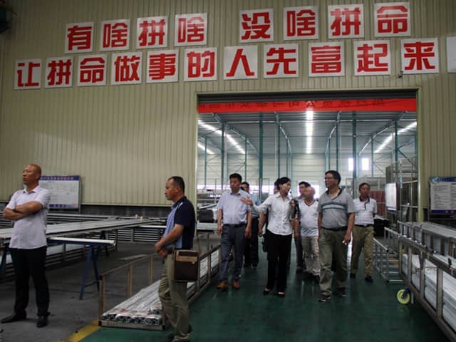 緊接著,參觀了天意樣板別墅、集成房屋、設(shè)備生產(chǎn)車間、鋁型材加工基地。專家領(lǐng)導(dǎo)團(tuán)對我公司擁有的先進(jìn)助力建筑垃圾廢棄物資源化利用的擠壓墻板生產(chǎn)線給予了高度評價(jià)。